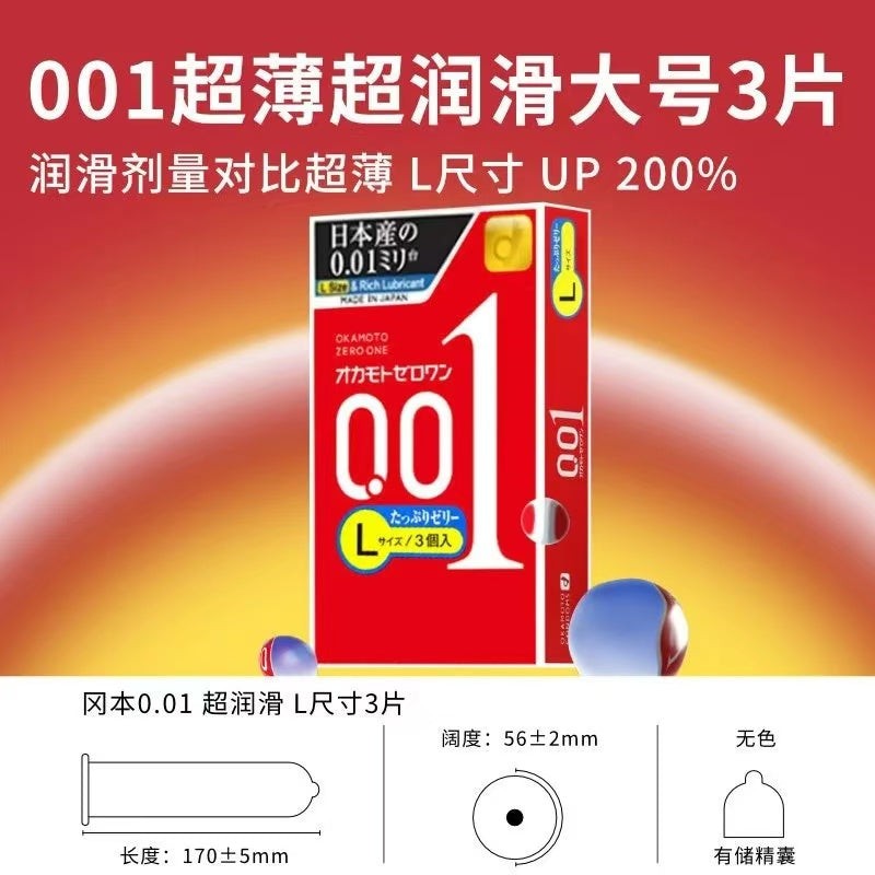 冈本<001超润滑>增加200%润滑液(3片装标准码)